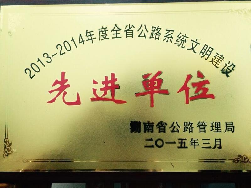 2015年3月10日,公路物供站喜获湖南省公路局颁发的“2013-2014年度全省公路系统文明建设先进单位”荣誉称号,这是对该站文明创建工作的高度肯定。