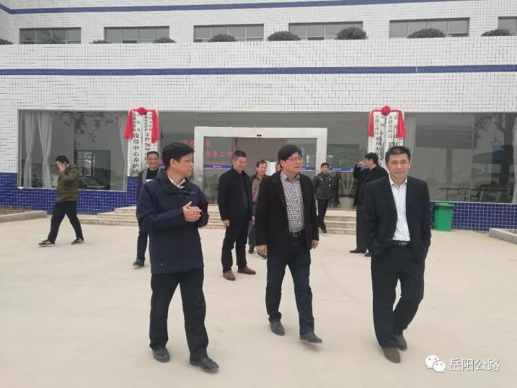 夏涛在市公路建设和养护中心党委书记、主任彭旅京,岳阳县人民政府副县长杨前进的陪同下视察鹿角治超和养护中心站