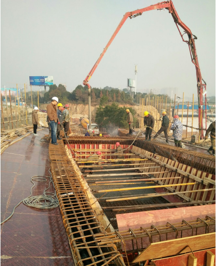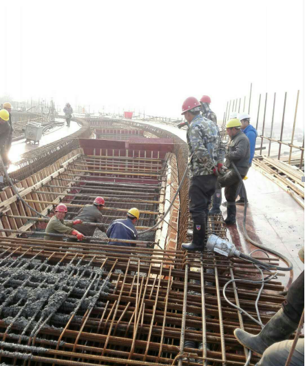 12月8日9:00-17:30,长康路立交H匝道桥H2~H4轴箱梁完成底腹板混凝土浇筑,本段箱梁上跨长康路主路,长70米,本次共浇筑C50混凝土265立方米。