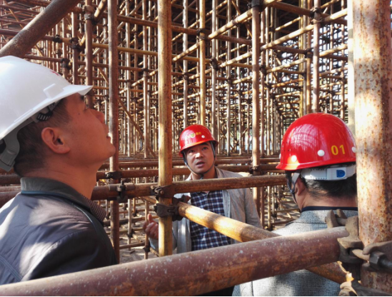 李为在现场详细了解了现浇箱梁的满堂支架搭设情况和箱梁的钢筋、模板及预应力管道的安装情况,并对现场的支架稳定、临时用电、高空作业等进行了安全检查。